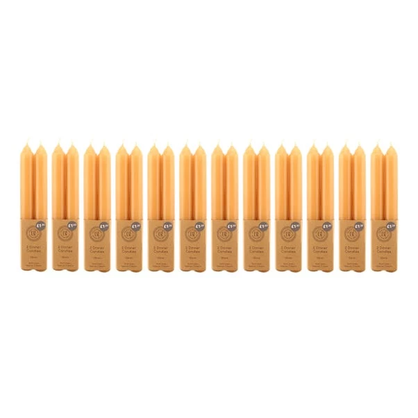 Looking fabulous and chic, these candles will add a stylish touch to your dinner table, with a modern colourway that will complement an array of home decors. This set of 12 pairs of old gold dinner candles has a burn time of up to 7 hours!