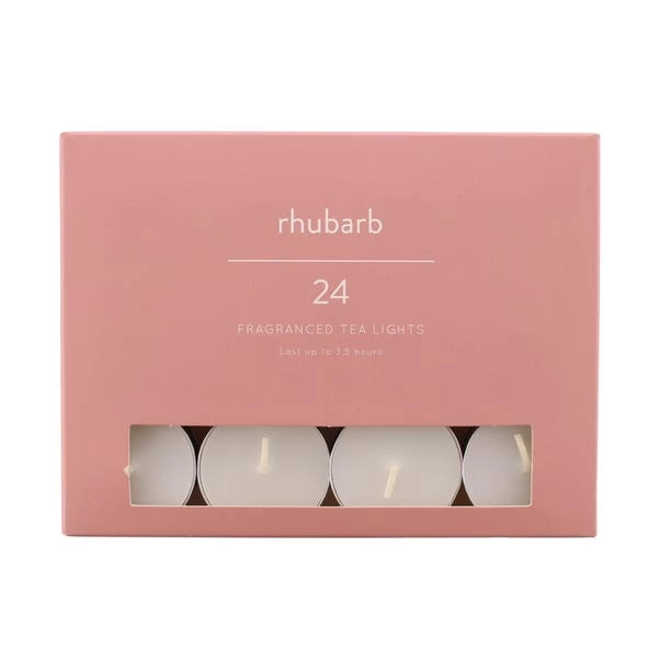 This pack of 24 seagrass fragranced tealights have a burn time of up to 3 and a half hours, perfect for filling your home sweet and delicious notes of rhubarb and elderflower are beautifully balanced by freshly picked peony and fig leaf before settling on a creamy vanilla base.