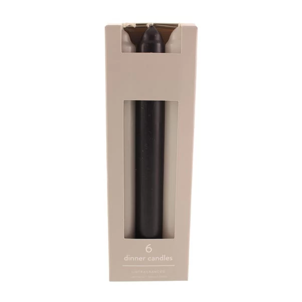 - Pack of 6 dinner candles in 3 colours