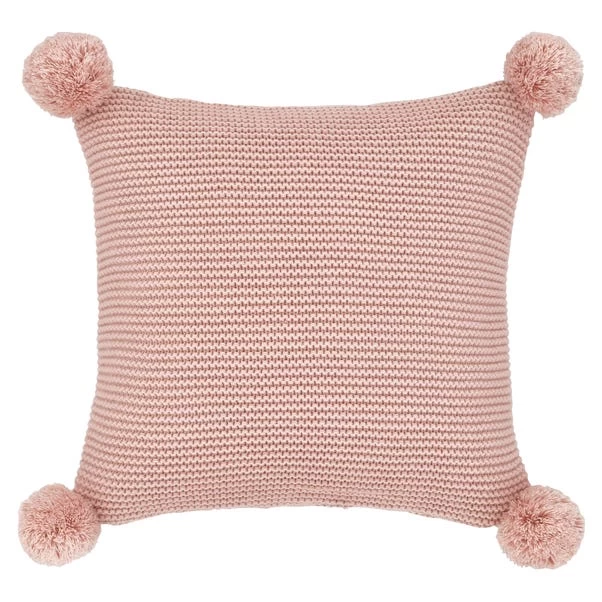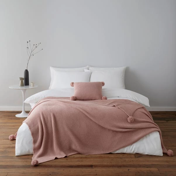 With a close knit texture that offers a super soft handle and pom pom in each corner, this square cushion, finished in a lovely blush colourway, makes a great addition to the bedroom. We style it with a plain white duvet cover set and pom pom throw.