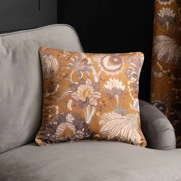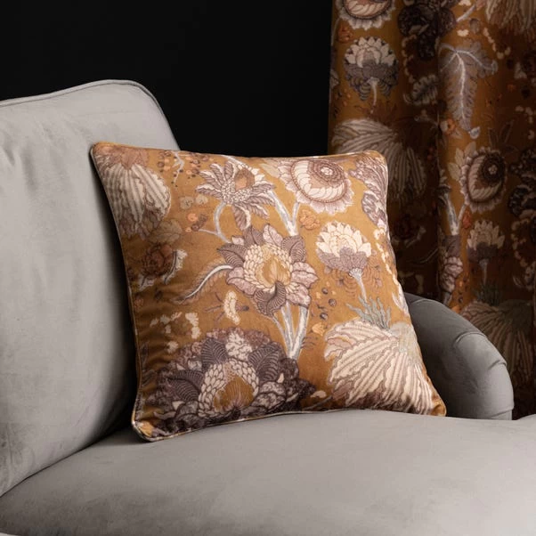 Rafaela is a classic English floral design based on 19th century tapestry designs. Re-imagined as a contemporary furnishing fabric with its pretty flowers in warm old gold tones this velvet cushion will bring a sense of elegance to an interior scheme. This cushion comes complete with an inner feather filled for your comfort. Matching curtains available in range of sizes.