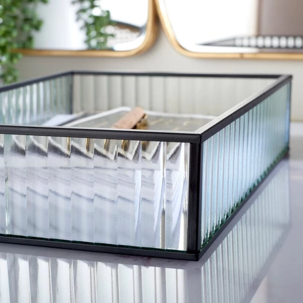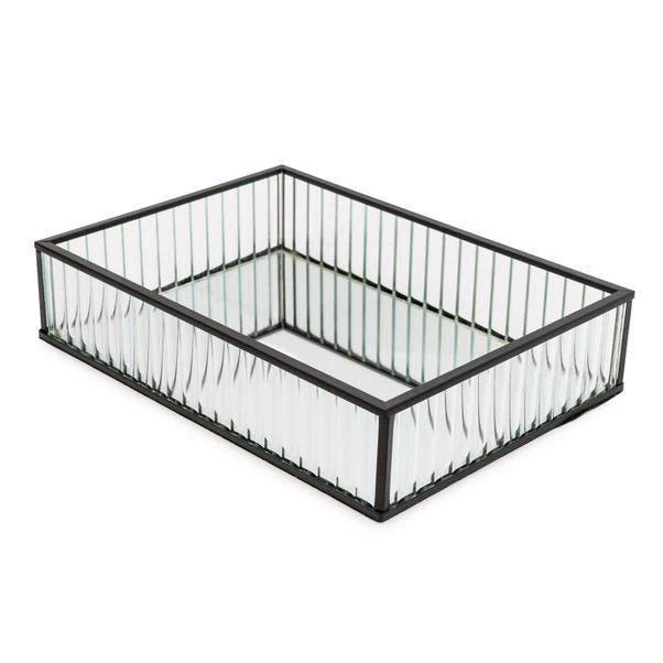 Perfect for adding a touch of stylish decor to any home, this stunning glass tray would make a gorgeous decorative storage solution for your room or an elegant gift for a loved one. Complete with transparent ribbed glass and a black coloured metal outline frame.
