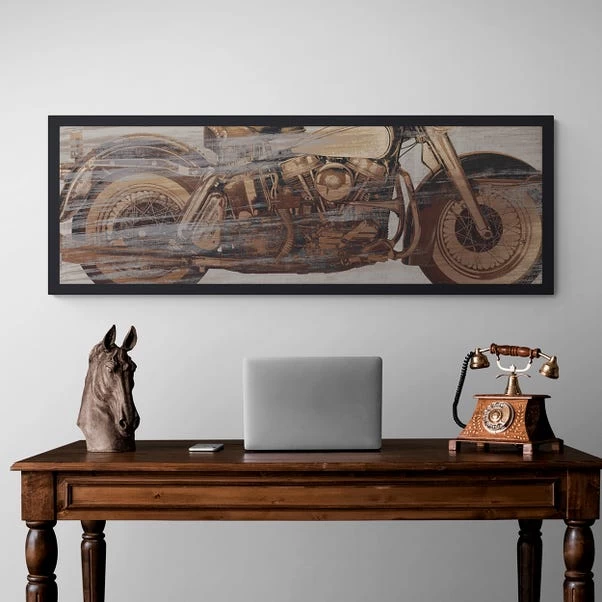 Add a retro vibe to your space with this artwork by Edward Selkirk. Displayed in a wide landscape format, this piece is perfect to place in a living room, hallway or other open space to showcase the fine details of this retro vehicle while the muted tones and black frame offer an understated touch.