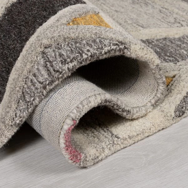 On opening, re-roll your rug pile out and leave it in a warm room for 24 hours before putting it in place, this will help to reduce wrinkles and curling from packing. Please note that a small amount of fibre loss is normal on a new rug. Use an anti-slip mat to help keep your rug in place and to provide additional protection for hard floors. Before using any cleaning products on your rug – test on an inconspicuous area first to check colour fastness and do not pull any loose threads, cut loose threads carefully with scissors. Avoid prolonged exposure to direct sunlight as this may cause fading of some dyes. Ensure to turn your rug regularly to ensure even wear. Clean spills immediately by blotting with a clean dry white cloth – do not rub. This rug may be carefully vacuumed using a floor or brush attachment, vacuuming the back of your rug with the rotating brush tool will help to push any dirt which is trapped deep down towards the top of the rug, it can then be flipped right side up and this dirt can be shaken off.