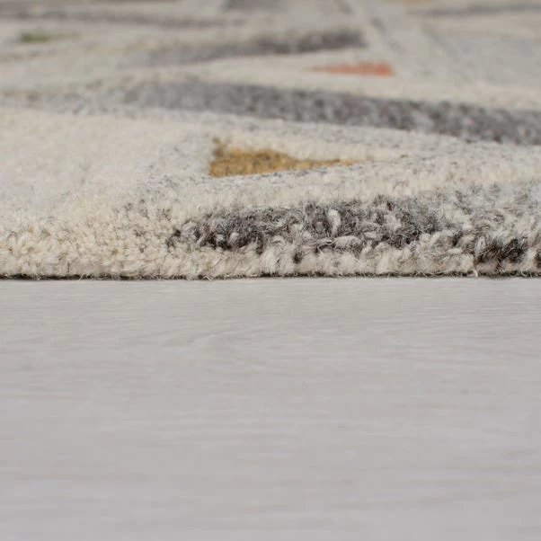 Introduce a contemporary element to your home décor with the Moda River Rug, featuring beautiful bold colours with intricate hand carved detailing that enhances the bold geometric design, making it perfect for adding a statement piece to your living space.