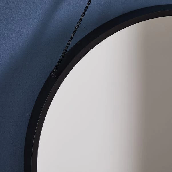 Add a simple and stylish touch to your home with this matt black mirror. Featuring an on-trend round shape, and chain detail, this mirror is ready to hang.