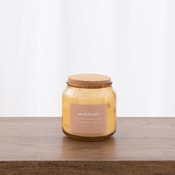 Lasting up to 55 hours, this stunning jasmine candle with a cork lid is situated in a coloured glass jar that will add a stylish look and feel to any room of the house. With a comforting and warm scent of rich sandalwood blends with soft amber and creamy vanilla to create a smooth woody fragrance, the jar can be kept and re-used for decorative purposes, once the wax has melted.
