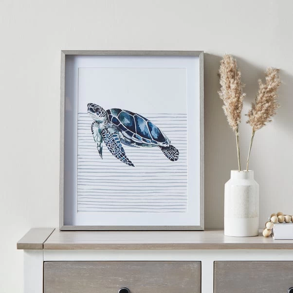 Hand painted exclusively for Dunelm, this stylish sea turtle piece is set in a grey frame with a glass frame. The printed paper piece can be used to create a stunning display alongside other prints, or will both stand out and complement your home by itself.
