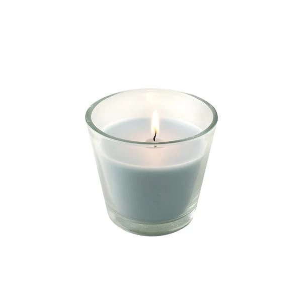 Finished in a clear glass with a sealed lid, this scented candle offers a Seagrass fragrance when lit.