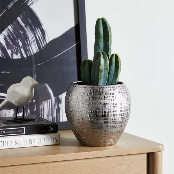 Perfect for adding a contemporary element to your home with this gorgeous ceramic curves planter. Featuring a wax resist, silver electroplate finish to create a stunning shimmer effect. This ceramic vase will look stunning placed alone or paired with other ornaments and plants.