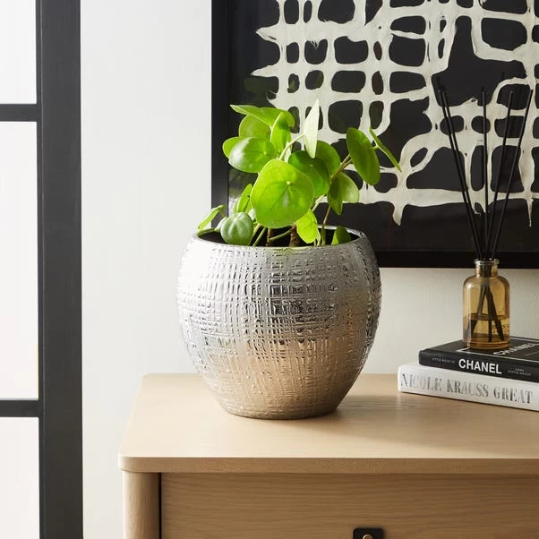 Perfect for adding a contemporary element to your home with this gorgeous ceramic curves planter. Featuring a wax resist, silver electroplate finish to create a stunning shimmer effect. This ceramic vase will look stunning placed alone or paired with other ornaments and plants.