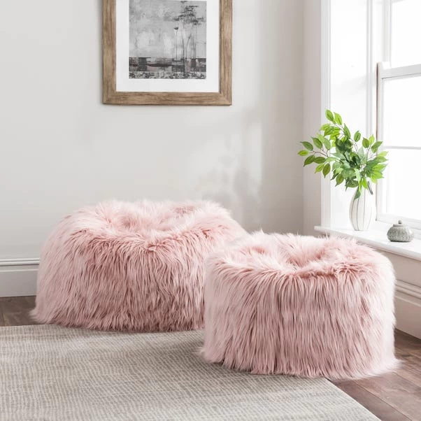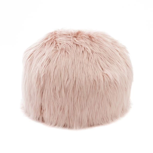 Luxuriously crafted from Mongolian faux fur, this small bean bagel is beautifully finished in a soft blush pink colourway.
