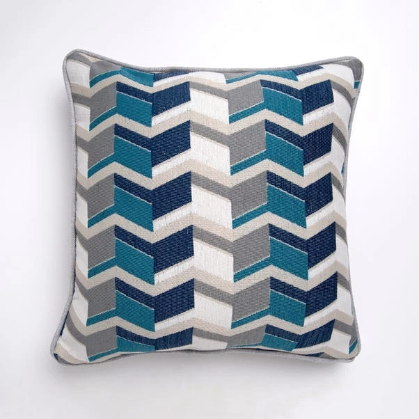 Designed with a modern geometric pattern, this square cushion cover comes complete with a secure zip fastening for ease of inserting the filling. Finished in a vibrant colour, this cushion cover features piped detailing and a contrasting plain reverse.