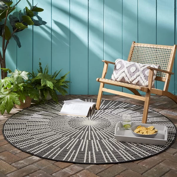 Create the perfect staycation spot with our indoor/outdoor Sticks Circle Rug. Perfect for life both indoors and out, the low-profile 100% polypropylene composition is weatherproof, easy-to-clean and ideal for high-traffic areas. We love using the simple monochrome design under circular dining tables to create a stylish socialising spot.