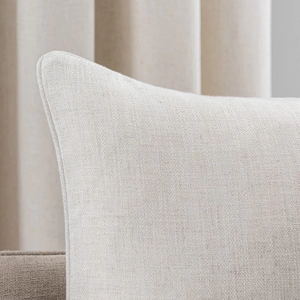 Designed with a classy ecru colourway, this filled cushion will bring a stylish touch to your home. Finished with a delicate piping detail and herringbone weave, you can match this cushion with a variety of décor styles as well as with our own Sydney curtains available separately. Plump and supportive, this cushion is filled with a hollowfibre filling and has a fully removable cover for your convenience.