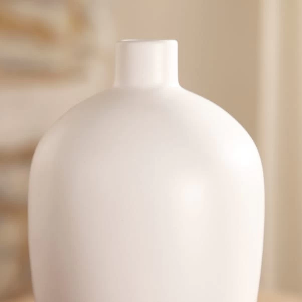 This simple, modern vase is the perfect finishing touch or centerpiece to bring a little life to your tablescapes. Its classic design will fit any decor, while its glazed finish helps it to stand up to everyday use.