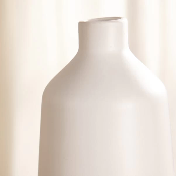 This simple, modern vase is the perfect finishing touch or centerpiece to bring a little life to your tablescapes. Its classic design will fit any decor, while its glazed finish helps it to stand up to everyday use.