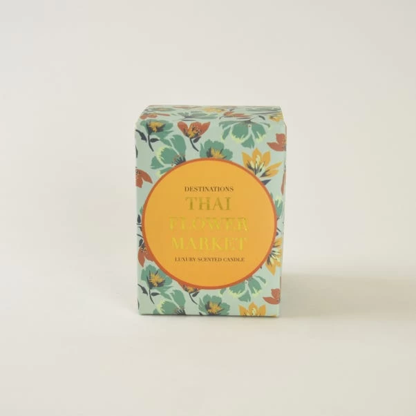 Set within a 220g glass pot, this stunning candle has a 26 hour burn time, adding a fragrant scent to any room of the house. Packaged in a beautiful Thai inspired colour gift box with wax pot to match the theme, this piece has a Thai flower market scent.