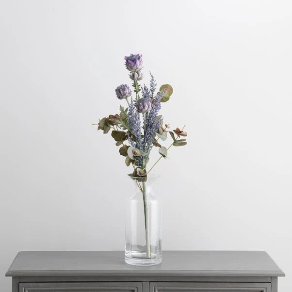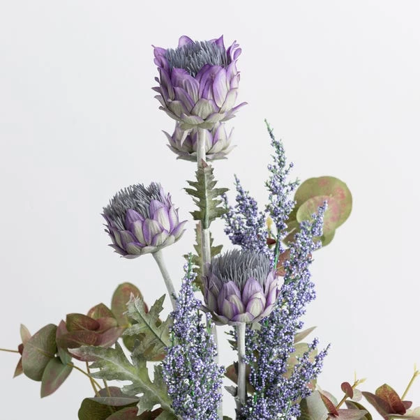 An array of thistles, berries and eucalyptus makes up the contents of this gorgeous bouquet. The bouquet is made from individual stems that can be arranged to preference, either by cutting it down to suit smaller vases, adding in real flowers or splitting across multiple vessels. The faux flowers are longer lasting than real flowers with no maintenance required. Conveniently packaged in a box specifically designed to fit through a letterbox, our letter box bouquet makes the perfect gift. Just confirm the delivery address has a standard sized letter box with 1m of space behind it to ensure a successful delivery.